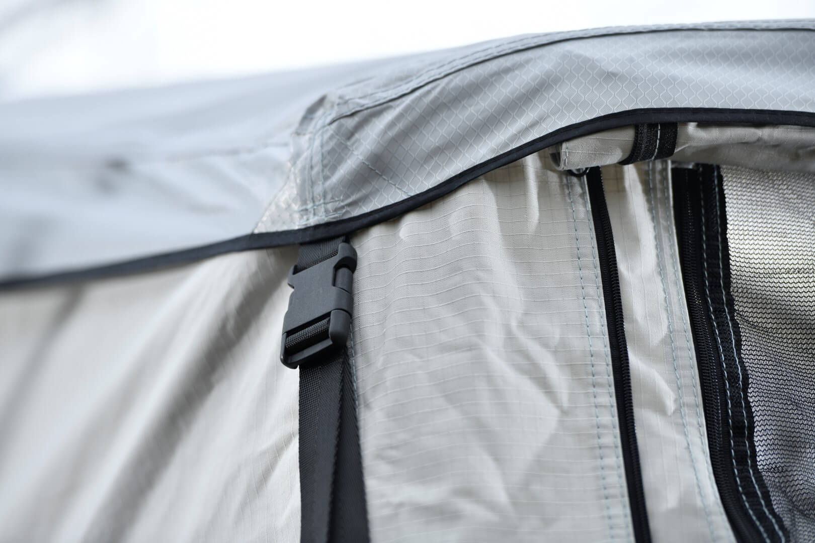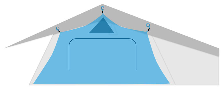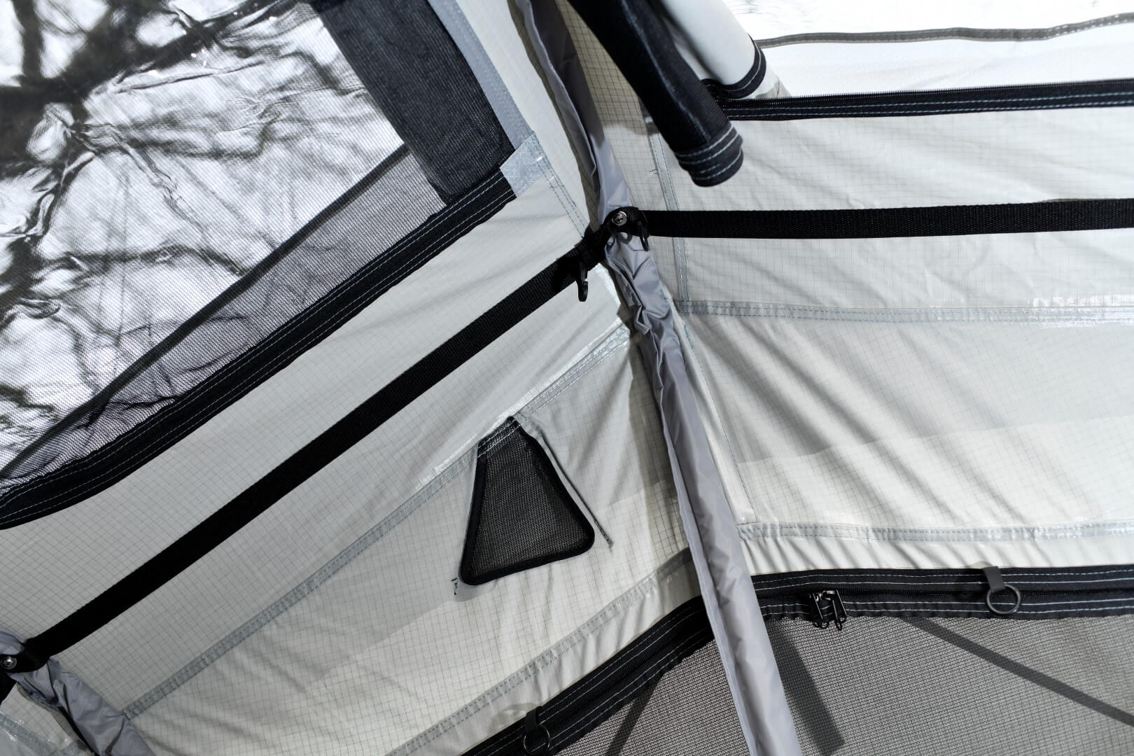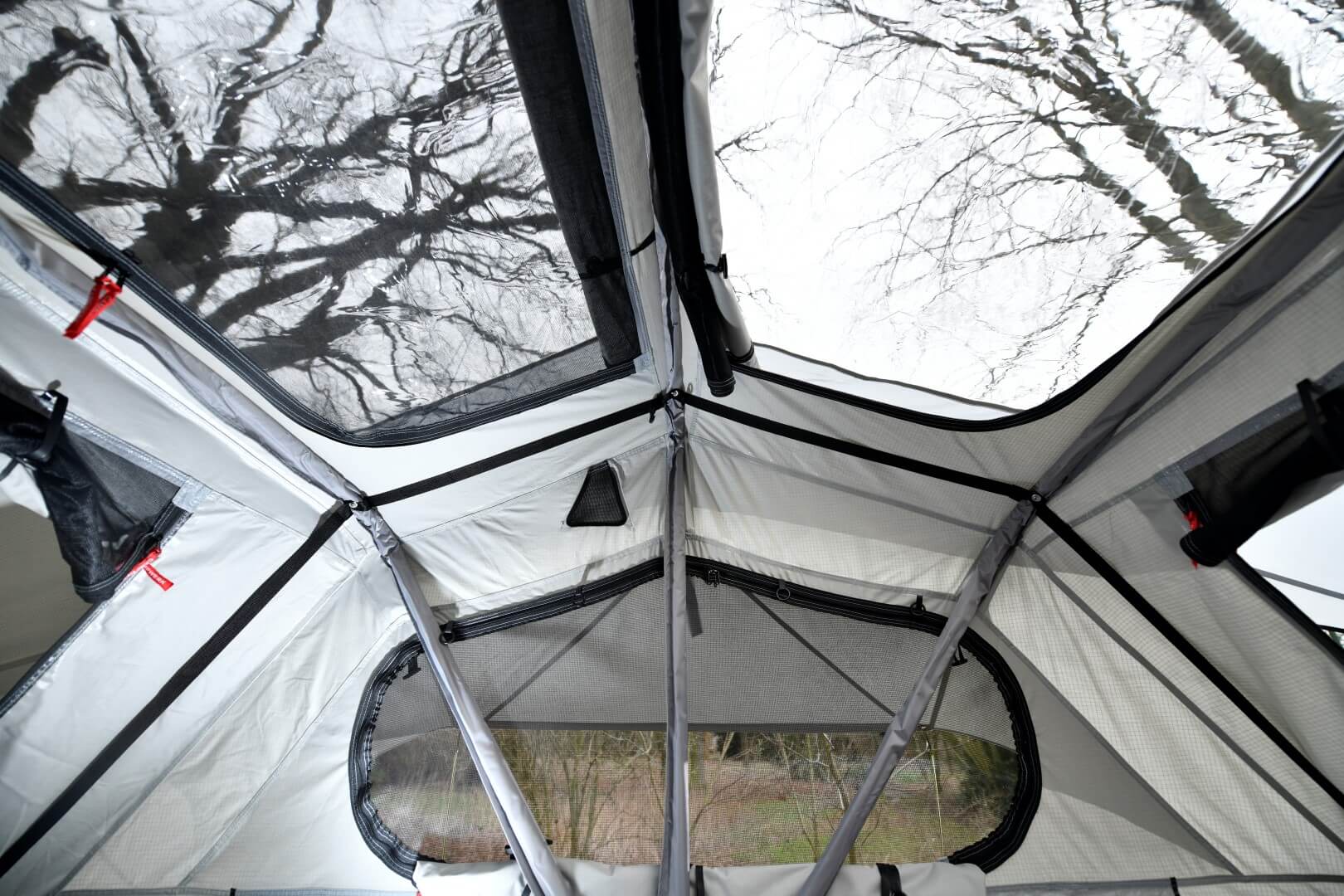 For at kunne nyde udsigten fra luften fuldt ud, er Adventure tagteltet udstyret med store vinduer på alle sider. Hvert vindue er forsynet med et finmasket, robust myggenet, der holder irriterende insekter ude, samt en vejrbestandig beskyttelse, der kan lukkes indefra, og som beskytter dig pålideligt mod vind og regn. Specielle overdækninger sikrer, at der også er optimal ventilation i teltet i kraftig regn.