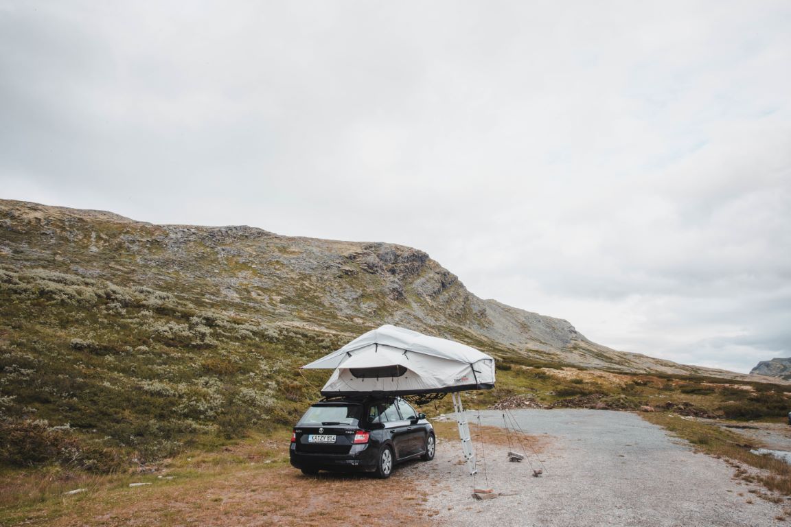 Tagteltet kan monteres på næsten ethvert køretøj, der har en dynamisk taglast på mindst 60 kg. Du skal blot bruge to tværstivere/lastbærere. Tagteltet fastgøres derefter til tværstiverne/lastbærerne med de medfølgende materialer. Det anbefales ikke at montere det direkte på et tagræling, da afstanden til taget er meget lille, og U-boltene kan forårsage ridser. Du skal altså også bruge tværstivere/lastbærere, selvom du har et tagræling.Vi tilbyder dig gerne passende bærere til dit køretøj direkte ved købet.