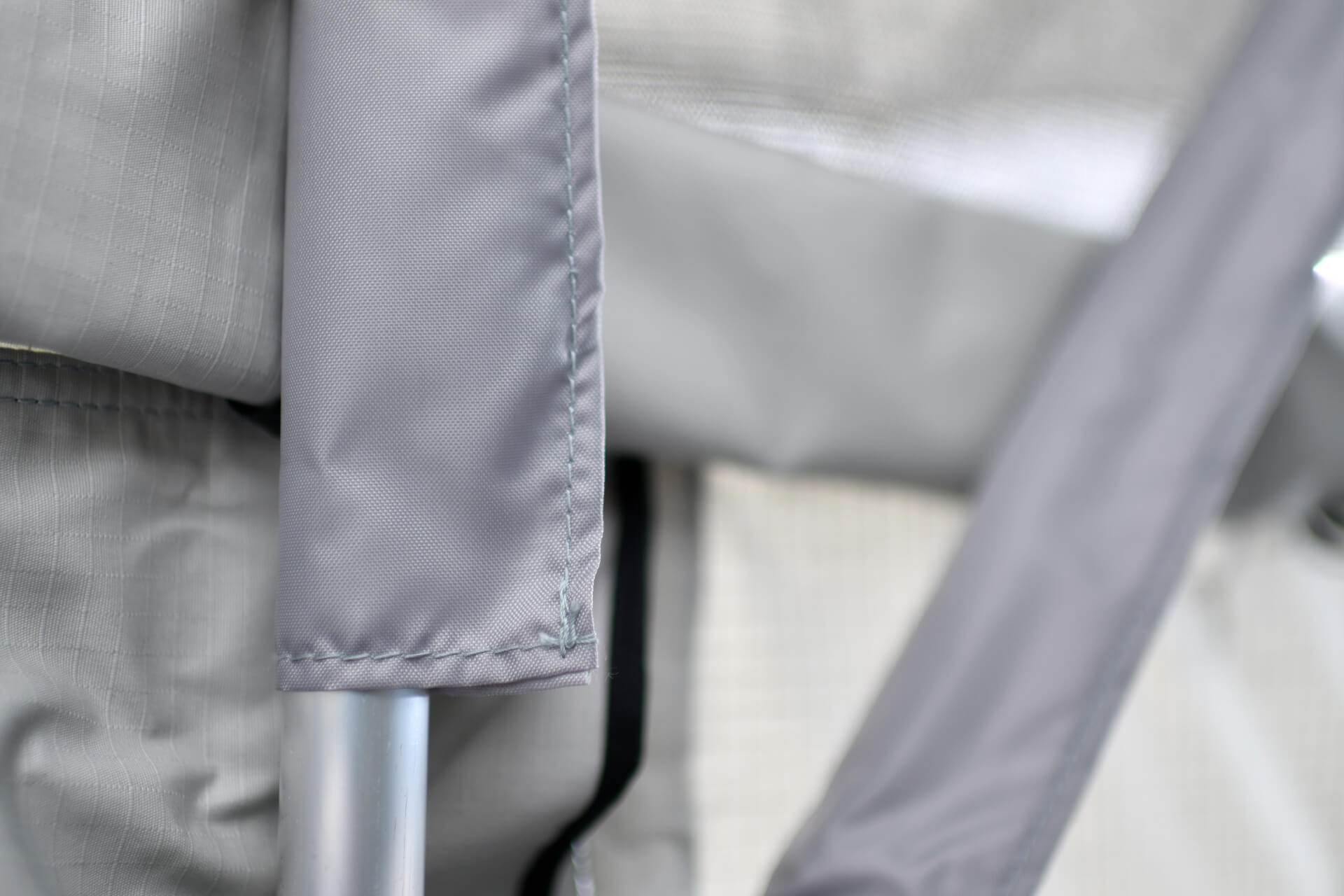 Teltstoffet er lavet af en højkvalitets blandingsvævning med en vægt på 300 g, også kendt som sejldug eller canvas. Denne kombination af bomuld og polyester forener fordelene ved naturlige fibre med egenskaberne fra moderne højteknologiske materialer. Resultatet er et robust, åndbart stof, der ikke kun giver en behagelig følelse, men også en høj formstabilitet.Dette teltstof, der også bruges i militæret, er imprægneret og særligt rivefast. Alle sømme er lavet med specielt garn, der udvider sig ved kontakt med vand og pålideligt forsegler eventuelle hul i sømmene.