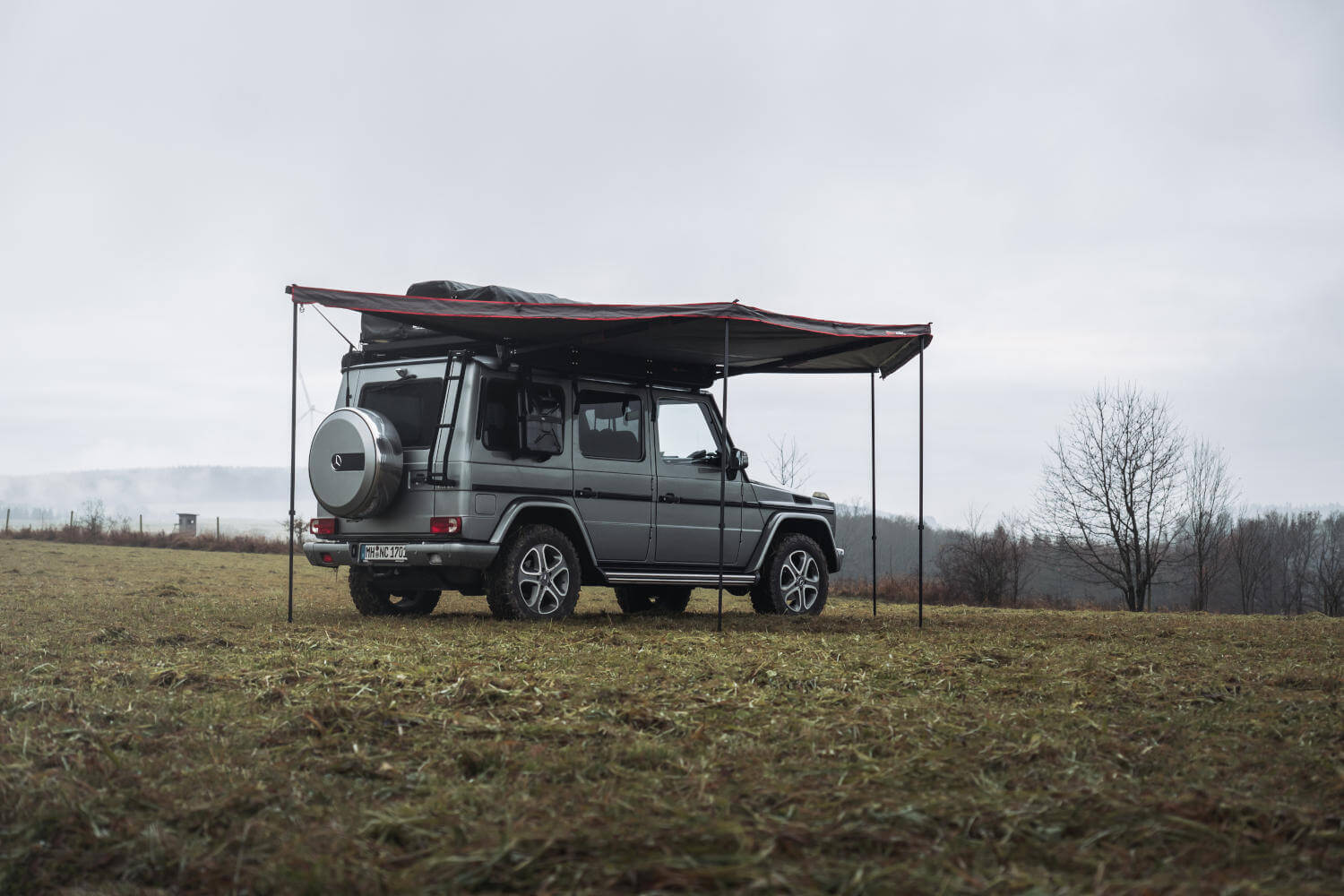 Den nye 270 ° kompaktmarkise er endnu lidt større. Denne sørger for en komplet overdækket allround-beskyttelse, da den ikke kun køres ud foran og til begge sider, men omfatter hele området fra førersiden rundt om til bagagerummet. Også denne markise er designet til nem op- og nedtagning af en person og sørger på grund af det robuste, vandfaste materiale for optimal beskyttelse.