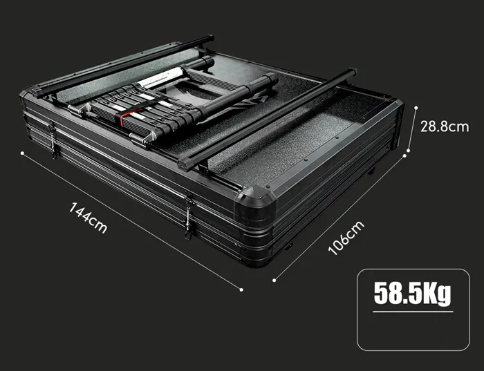 Tagteltets robuste hårde skal er lavet af aluminium. I sammenfoldet tilstand måler teltene ca. 144 x 106 cm (Summit 140) og 200 x 106 cm (Summit 180).