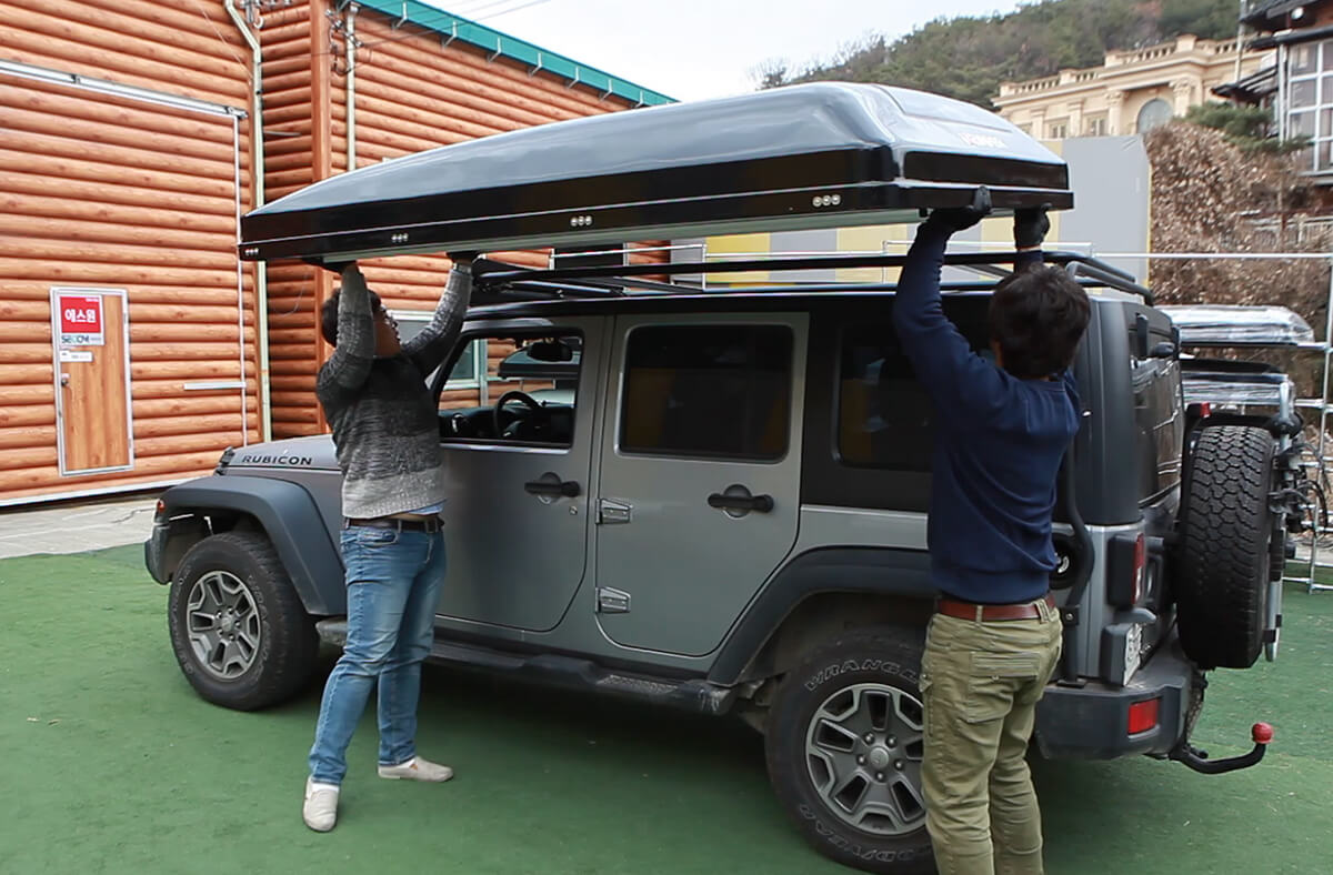 Tagteltet fastgøres derefter meget nemt. De fleste modeller har mindst to skinner i bunden af teltet. Ved hjælp af disse skubbes teltet nemt op på de tagbøjler, der allerede er fastgjort til bilen, og sikres. Specialisterne overtager normalt dette direkte for dig ved køb.